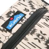 Cross body bag with adjustable webbing shoulder strap that can detach, plastic d-ring and snap hook hardware, main compartment with zip closure and two-way rope loop zip pulls, front zip and back stash pockets, internal zip pocket, built-in card slots, plastic key clip and cord loop to hang eyewear.